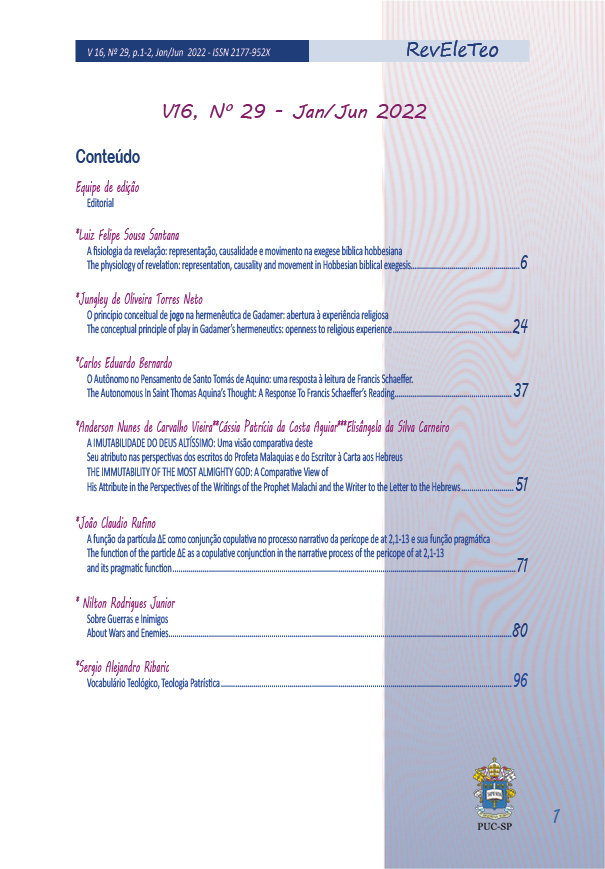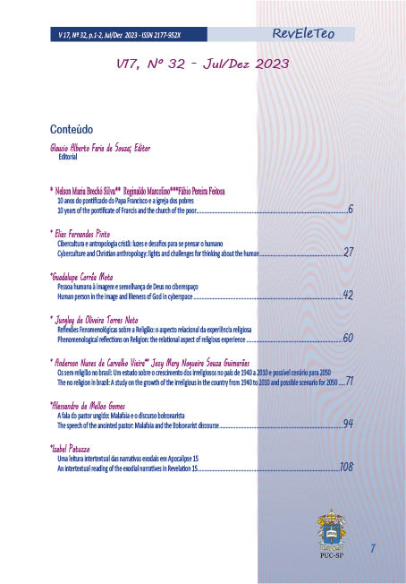 A Revista Eletrônica Espaço Teológico e os textos aqui publicados estão licenciados com uma Licença Creative Commons Attribution-NoDerivatives 4.0 International. Baseado no trabalho disponível em https://revistas.pucsp.br/reveleteo. Podem estar disponíveis autorizações adicionais às concedidas no âmbito desta licença emhttps://revistas.pucsp.br/reveleteo.